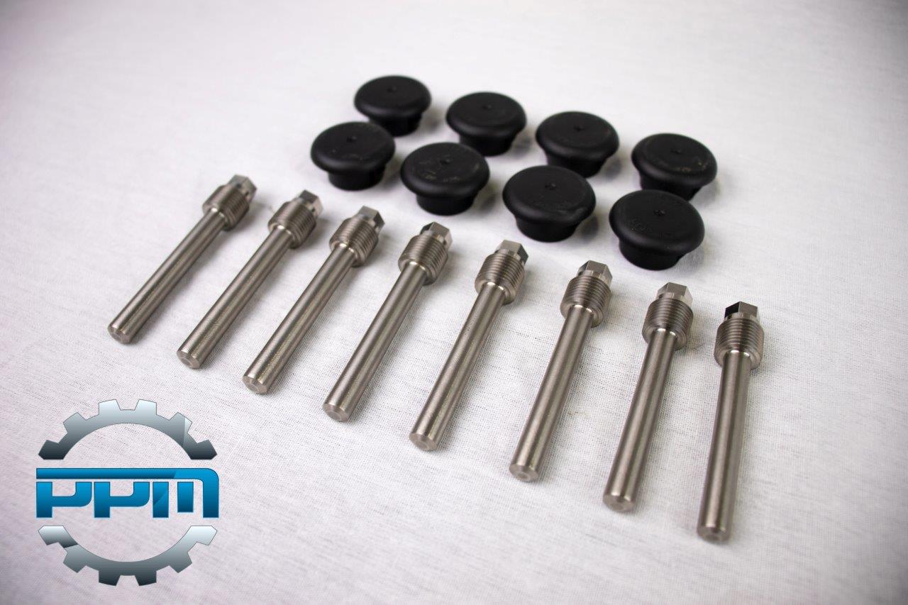 Designed for high-horsepower and nitrous-fed engines, this kit allows you to safely remove the factory glow plugs from your 6.0L or 6.4L Power Stroke. Under extreme boost and combustion pressure, glow plugs are a known failure point that can result in catastrophic engine damage. Our kit solves this by replacing them with precision stainless steel delete plugs that seal the combustion chamber.